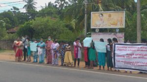 அட்டலுகமவை சேர்ந்த 9 வயதான சிறுமியின் மரணத்துக்கு நீதிகோரி பல்பேவறு சுலோக அட்டைகளையும் ஆர்ப்பாட்டக்காரார்கள் ஏந்தியிருந்தனர்.