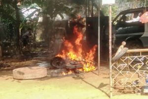 இதனையடுத்து வாகன திருத்துமிடத்தில் இருந்தவர்கள் தீயை அணைக்க முயற்சித்த போதும் மோட்டார் சைக்கிளின் பெரும் பகுதி தீயில் எரிந்து நாசமாகியுள்ளது.