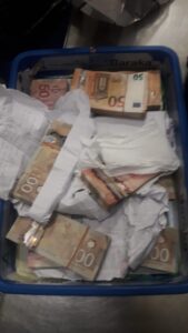 இதையடுத்து அவரது பயணப் பொதிகளை சோதனையிட்டதில் 117,000 கனேடிய டாலர்கள் மற்றும் 19,000 யூரோக்கள் ரொக்கமாக இருந்மை கண்டறியப்பட்டுள்ளது.