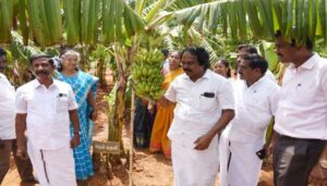 20 வாழை ரக கன்றுகள் நடும் பணியை கடந்த ஆண்டு ஜூன் மாதம் 20-ந்தேதி தொடங்கி வைத்தேன். நடவு செய்யப்பட்ட வாழை மரங்களை நேரில் பார்வையிட்டு ஆய்வு மேற்கொள்ளப்பட்டதில், பல இனங்கள் நன்றாக வளர்ந்திருப்பதோடு பல வாழை மரங்களில் வாழைக்காய்கள் காய்த்துள்ளது. இது மிகப்பெரிய சாதனையாகும்.