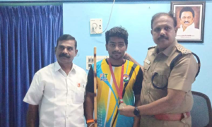 பண்ருட்டியில் அவருக்கு சிலம்பம் கழகம் சார்பில் உற்சாக வரவேற்பு அளிக்கப்பட்டது . தேசிய அளவிலான சிலம்பம் போட்டியில்தங்க வென்ற மாணவன் துளசிதரனை பண்ருட்டி துணை போலீஸ் சூப்பிரண்டு சபியுல்லா பாராட்டி வாழ்த்து தெரிவித்தார். பண்ருட்டி வீர தமிழர் தற்காப்பு கலை கூடபேரவை சிலம்பம் ஆசிரியர் சிகாமணி,முத்துலிங்கம் தண்டபாணி ஆகியோர் உடனிருந்தனர்.