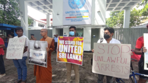 கொழும்பிலுள்ள ஐக்கிய நாடுகள் அலுவலகத்திற்கு முன்னால் இவ்வாறு அமைதியான முறையில் ஆர்ப்பாட்டமொன்று முன்னெடுக்கப்பட்டு வருகின்றது.