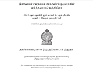 அரசியலமைப்பின் 22 ஆவது திருத்தச் சட்டமூல வரைவு வர்த்தமானியில் வெளியிடப்பட்டுள்ளது. அரசியலமைப்பின் 22 ஆவது திருத்தச் சட்டமூல வரைவு நீதி அமைச்சர் விஜேதாச ராஜபக்ஷவினால் கடந்த அமைச்சரவைக்கு சமர்ப்பிக்கப்பட்டிருந்தது.