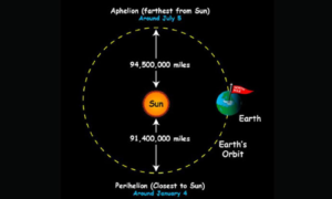 பூமி சூரியனுக்கு மிக அருகில் இருப்பதை பெரிஹேலியன் என்று அழைக்கப்படும். அல்பெலியன் பொதுவாக ஒவ்வொரு ஆண்டும் ஜூலை 6-ந்தேதியும், பெரிஹேலியன் ஜனவரி 2-ந்தேதி தொடங்கும். பூமியில் இருந்து சூரியனுக்கான சராசரி தூரம் 150 மில்லியன் கிலோமீட்டர் தூரம் ஆகும்.