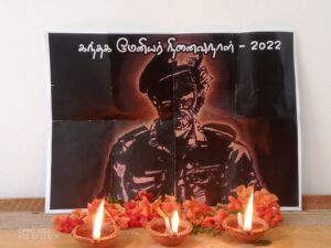 இதன்பொழுது மாணவர்களால் மலரஞ்சலி செலுத்தப்பட்டதோடு அதனைத்தொடர்ந்து ஈகைச்சுடரேற்றப்பட்டு ஒரு நிமிட அகவணக்கமும் செலுத்தப்பட்டது.
