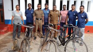 .இதன்போது சைக்கிள்கள் திருட்டில் ஈடுபட்ட ஒருவர் அடையாளப்படுத்தப்பட்திருந்ததுடன் அவருடன் தொடர்புடைய மாந்தை கிழக்கு பகுதியை ; சேர்ந்த மேலும் இருவர் கைதுசெய்யப்பட்டுள்ளதுடன் அவர்களிடம் இருந்து 03 சைக்கிள்கள், 05 தண்ணீர் பம்புகள் மீட்கப்பட்டுள்ளன.