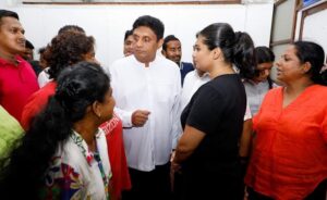 இந்த நிலையில் துறைமுக பொலிஸ் நிலைய கூண்டில் ஹிருணிக்கா உள்ளிட்டோர் தடுத்து வைக்கப்ப்ட்டிருந்த நிலையில் அங்கு சென்ற எதிர்க் கட்சித் தலைவர் சஜித் பிரேமதாச, கைது செய்யப்பட்டவர்களை சந்தித்தார்.