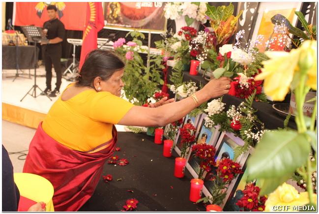 அகவணக்கத்தைத் தொடர்ந்து நிகழ்வில் கலந்துகொண்ட அனைவரும்; அணிவகுத்து சுடர்ஏற்றி மலர் வணக்கம் செலுத்தினர்.