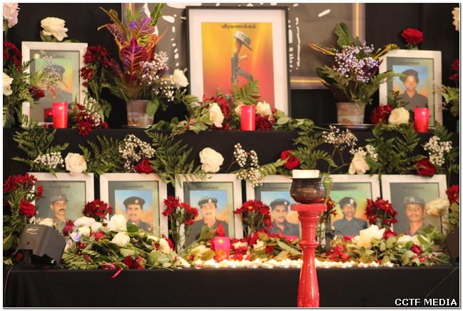 கரும்புலிகள் பொது உருவப்படம், கரும்புலி கப்டன் மில்லர், கடற்கரும்புலி கப்டன் அங்கயர்க்கண்ணி உள்ளிட்ட தற்கொடையாளர்களின் திருஉருவப் படங்களிற்கான ஈகைச் சுடர்களை