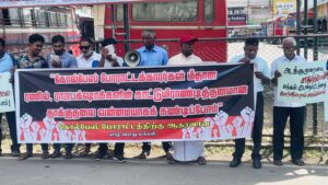 காலிமுகத்திடலில் இடம்பெற்ற தாக்குதலுக்கு எதிர்ப்பு தெரிவித்து யாழ்ப்பாணத்தில் கண்டன போராட்டம் இன்று “கோல்பேஸ் போராட்டகாரர்கள் மீதான ரணில் – ராஜபக்ஷாக்களின் காட்டுமிராண்டித்தனமான தாக்குதலை வன்மையாக கண்டிப்போம்” எனும் தொனிப்பொருளில் யாழ்ப்பாணம் மத்திய பேருந்து நிலையத்தின் முன்பாக இந்த போராட்டம் முன்னெடுக்கப்பட்டது.