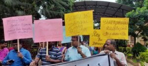 யாழ் பல்கலைக்கழக ஆசிரியர் சங்கத்தின் எற்பாட்டில் இன்று செவ்வாய்க்கிழமை மதியம் 12 மணியளவில் ஒன்றுகூடிய பல்கலைக்கழக ஆசிரியர் சங்கப்பிரதிநிதிகள் மற்றும் பல்கலைக்கழக விரிவுரையாளர்கள் கவனயீர்ப்பு போராட்டத்தில் ஈடுபட்டனர்.