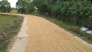 தமக்கென ஒரு நெல் உலரவிடும் தளம் இல்லாத காரணத்தினால் வீதியை மறித்து நெல்லை உலர விடுகிறோம். தற்போது தொடர்ச்சியாக மழை பெய்து வரும் காரணமாக இரவு வேளைகளிலும் அவ்வீதியில் படுத்துரங்கும் நிலை ஏற்பட்டுள்ளது.