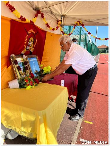தொடர்ந்து ஈகைச்சுடரினை 14.05.1995 அன்று வில்பத்துக் காட்டுப் பகுதியில் வீரகாவியமடைந்த மாவீரர் லெப்.இரத்தினம் பிரசன்னா அவர்களின் சகோதரர் ஏற்றிவைக்க, பிரான்சு தமிழ்ச் சோலைத் தலைமைப் பணிமனைப் பொறுப்பாளர் திரு.ஜெயக்குமார் அவர்கள் மலர்வணக்கம் செலுத்தினார்.