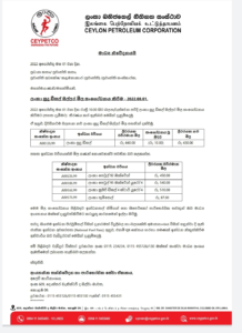 எவ்வாறாயினும், ஏனைய எரிபொருள் வகைகளில் எவ்விதமான விலை மாற்றங்களும் மேற்கொள்ளப்படவில்லை எனவும் பெற்றோலிய கூட்டுத்தாபனம் மேலும் அறிவித்துள்ளமை குறிப்பிடத்தக்கது.