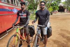 தொல்புரத்தைச் சேர்ந்த குகநாதன் நிதுசன் (வயது 24) பாஸ்கரன் சுமித்தன் (22) ஆகிய இரண்டு இளைஞர்களுமே இவ்வாறு துவிச்சக்கர வண்டி பயணத்தை ஆரம்பித்துள்ளமை குறிப்பிடத்தக்கது