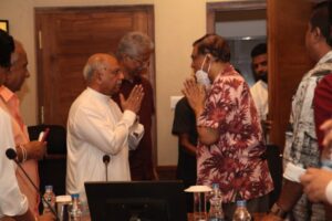 இலங்கைப் பிரதமர் தினேஷ் குணவர்தன, பொதுஜன பெரமுனவின் தேசிய அமைப்பாளர் பசில் ராஜபக்ஷவை பொதுஜன பெரமுன கட்சி அலுவலகத்தில் சந்தித்தார்.