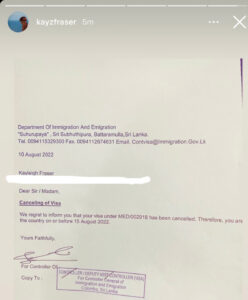காலிமுகத்திடலில் இடம்பெற்ற போராட்டத்துக்கு ஆதரவாக சமூக ஊடகங்களில் பதிவிட்ட பிரித்தானிய பிரஜையின் விசாவை குடிவரவு குடியகல்வுத் திணைக்களம் இரத்துச்செய்துள்ளது.