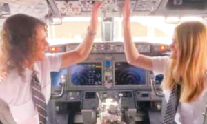 இருவரும் அமெரிக்காவின் கொலராடோ மாநிலத்திலுள்ள டென்வரில் இருந்து செயிண்ட் லூயிஸ் நகருக்கு விமானத்தை இயக்கி இருக்கிறார்கள். இரு நகரங்களுக்கு இடையே விமான பயண தூரம் சுமார் 2 மணி நேரம். இதன் மூலம் அமெரிக்காவில் விமானம் இயக்கிய முதல் தாய்-மகள் என்ற பெருமையை பெற்றுள்ளார்கள். இருவரும் விமானம் ஓட்டும் புகைப்படங்களும், வீடியோவும் சமூக வலைத்தளங்களில் பகிரப்பட்டு வைரலாகி இருக்கிறது. ”எங்களுக்கும், சவுத் வெஸ்ட் ஏர்லைன்ஸுக்கும் இது உற்சாகமான நாள்.