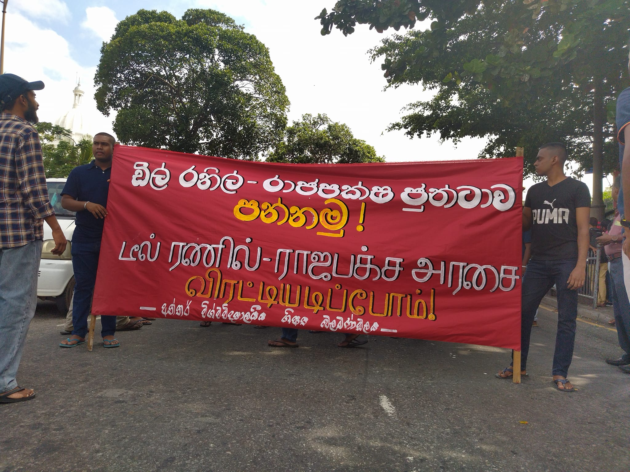 டீல் ரணில் – ராஜபக்ஷ அரசை விரட்டியடிப்போம்’ என்ற கோஷத்துடன் அனைத்துப் பல்கலைக்கழக மாணவர் ஒன்றியத்தினால் இன்று (18) வியாழக்கிழமை கொழும்பு, லிப்டன் சுற்றுவட்டத்திற்கு அண்மையில் ஏற்பாடு செய்யப்பட்டிருந்த போராட்டத்தின்மீது பொலிஸாரால் கண்ணீர்ப்புகை மற்றும் நீர்த்தாரைப்பிரயோகம் நடத்தப்பட்டதுடன் அனைத்துப்பல்கலைக்கழக மாணவர் ஒன்றியத்தின் ஒருங்கிணைப்பாளர் வசந்த முதலிகே உள்ளிட்ட போராட்டக்காரர்கள் சிலர் பொலிஸாரால் துரத்திச்சென்று கைதுசெய்யப்பட்டனர்.