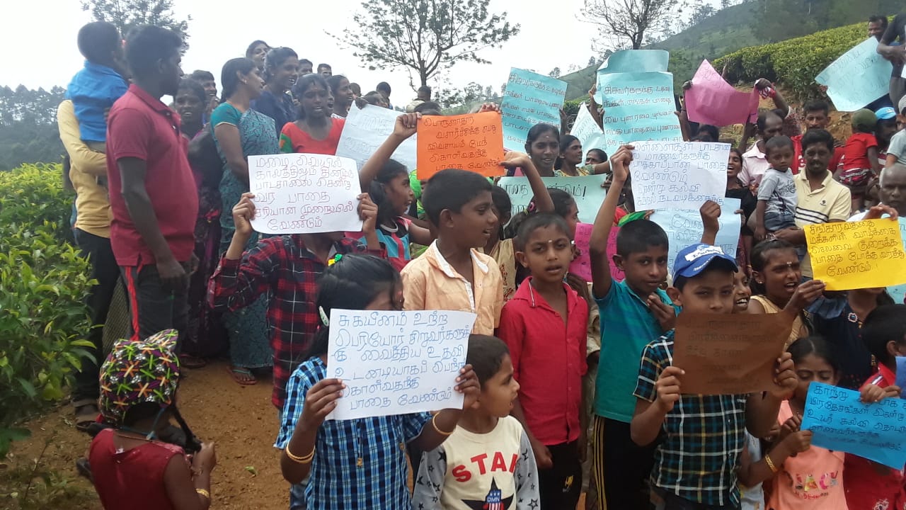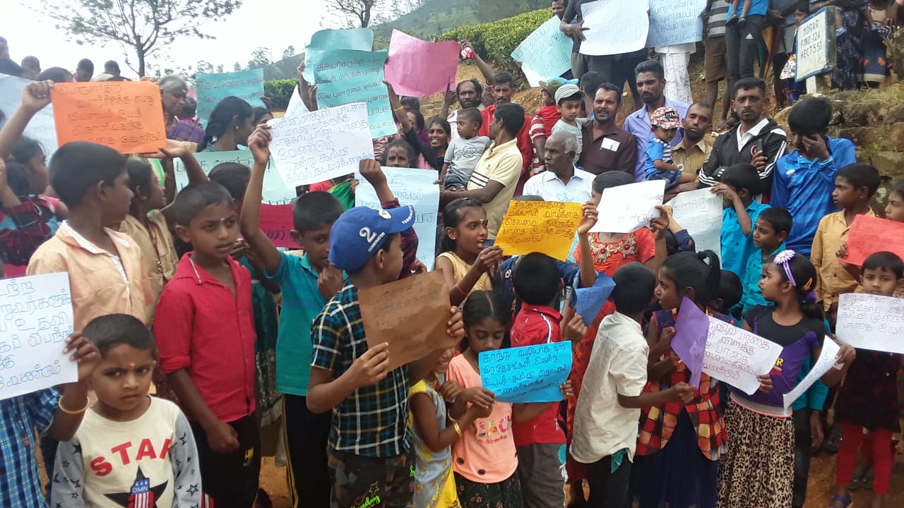 புனரமைப்பு செய்து தருவதாக அரசியல்வாதிகள் அடிக்கல் நாட்டிய போதிலும் இதுவரை எவ்வித நடவடிக்கையும் மேற்கொள்ளாத காரணத்தினால் இத்தோட்டத்தை சேர்ந்த 200-க்கும் மேற்பட்ட பொதுமக்கள் பாதைகளை ஏந்தி கோஷங்களை எழுப்பி பிரதான வீதியில் எதிர்ப்பினை முன்னெடுத்தனர்.