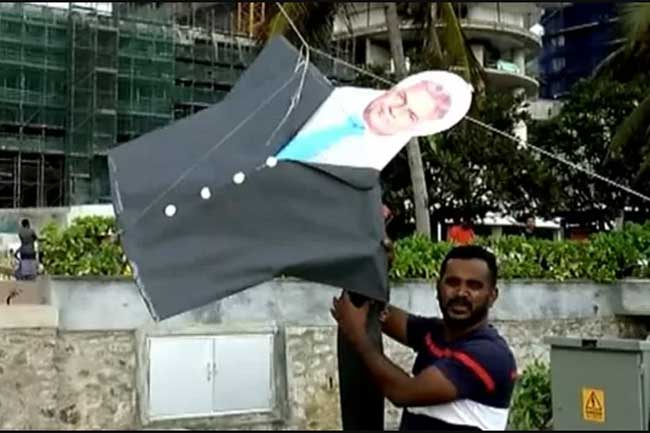 ஜனாதிபதி ரணில் விக்ரமசிங்க, முன்னாள் ஜனாதிபதி மஹிந்த ராஜபக்ஷ உள்ளிட்ட பலரின் உருவப்படங்களை பயன்படுத்தி, இந்த பட்டம் பறக்க விடப்பட்டது.