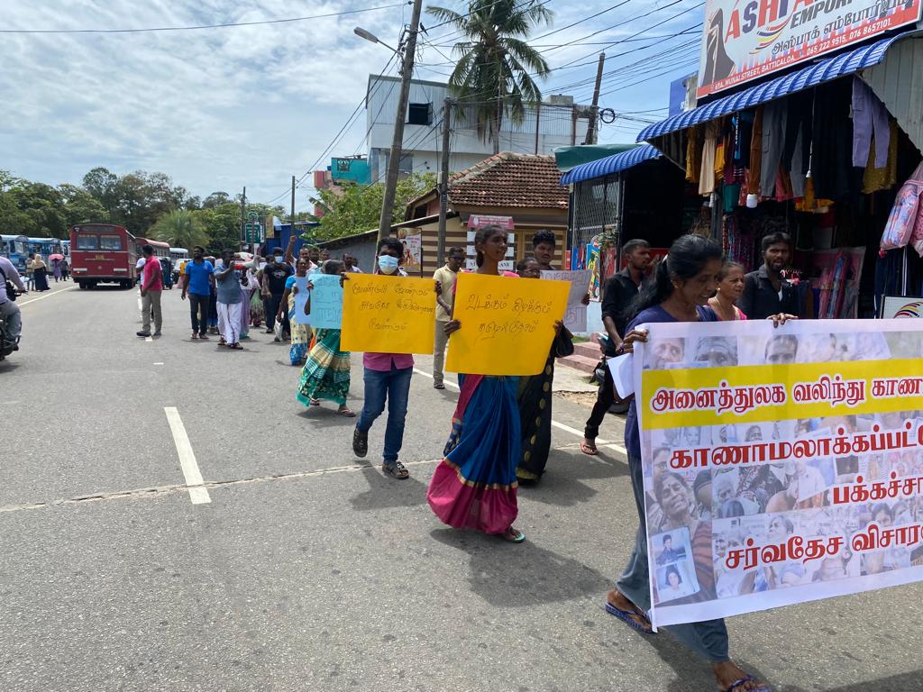 மட்டக்களப்பு காந்திபூங்காவிலிருந்து வலிந்து காணாமல்ஆக்கப்பட்ட உறவினர்கள் கலந்துகொண்ட கவன ஈர்ப்பு பேரணியானது ஆரம்பமாகி மட்டக்களப்பு பிரதான பஸ் நிலையம் ஊடாக தந்தை செல்வா சதுக்கம் வரையில் சென்றதுடன் அங்கு ஆர்ப்பாட்டமும் முன்னெடுக்கப்பட்டது.