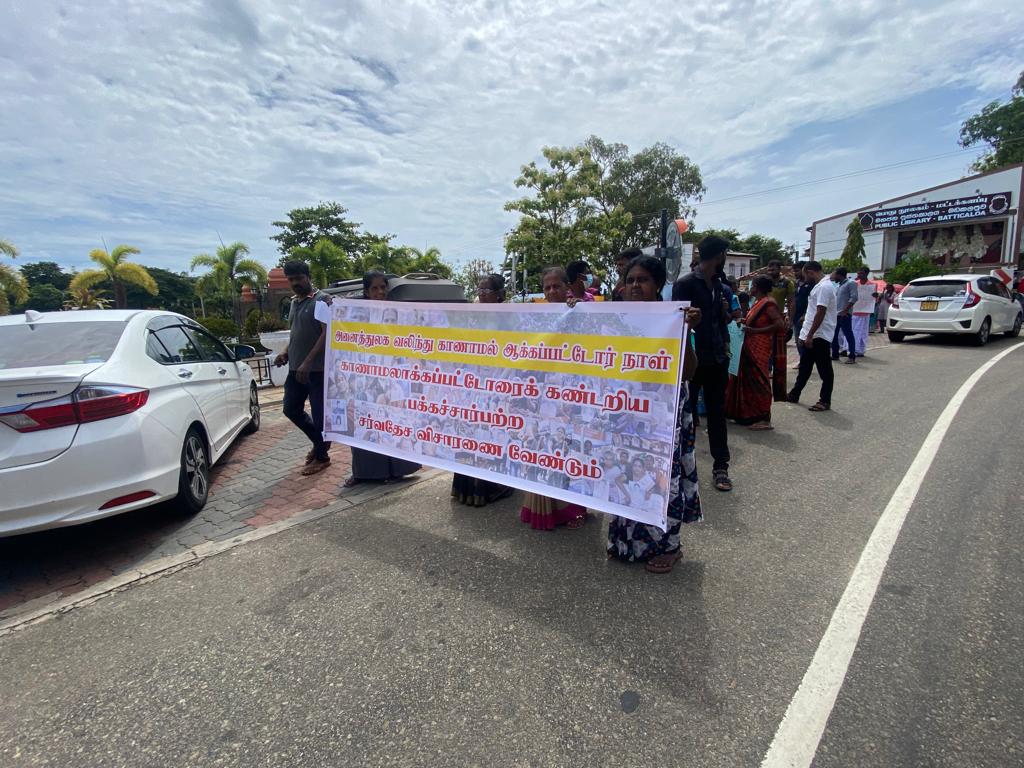 வலிந்து காணாமல்ஆக்கப்பட்டவர்களை கண்டறிய பக்கச்சார்பற்ற சர்வதேச விசாரணை வேண்டும் என்பதை வலியுறுத்தி இன்றைய தினம் மட்டக்களப்பு மாவட்டத்தில் போராட்டங்கள் முன்னெடுக்கப்பட்டன.