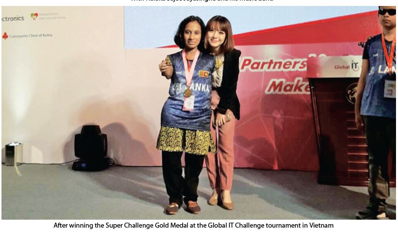 அத்துடன் 2017ஆம் ஆண்டு வியட்நாமில் இடம்பெற்ற Global IT challenge 2017 Super challenger என்ற சர்வதேச போட்டியில் தங்க பதக்கம் பெற்றுள்ளார்.