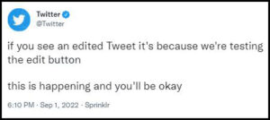 இந்நிலையில், டுவிட்டர் பயனாளர்களின் நீண்ட கால கோரிக்கையான எடிட் பட்டன் வசதியை சோதித்து வருவதாக அந்நிறுவனம் தெரிவித்துள்ளது.