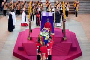 பிரித்தானிய மகாராணி எலிசபெத்தின் உடலம் தற்போது வெஸ்ட்மின்ஸ்டர் மண்டபத்தில் அஞ்சலிக்காக வைக்கப்பட்டுள்ளது.