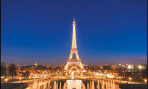 பிரான்ஸ் தலைநகர் பாரீசில் உள்ள உலக புகழ்பெற்ற ஈபிள் கோபுரம் ஒவ்வொரு நாளும் இரவில் மின்னொளியில் ஜொலிக்கிறது. 20 ஆயிரத்துக்கும் மேற்பட்ட ஒளிரும் மின் விளக்குகளால் கோபுரம் மின்னுகிறது. உள்ளூர் நேரப்படி நள்ளிரவு 1 மணி வரை ஈபிள் கோபுரத்தில் மின்விளக்குள் ஒளிரும்.