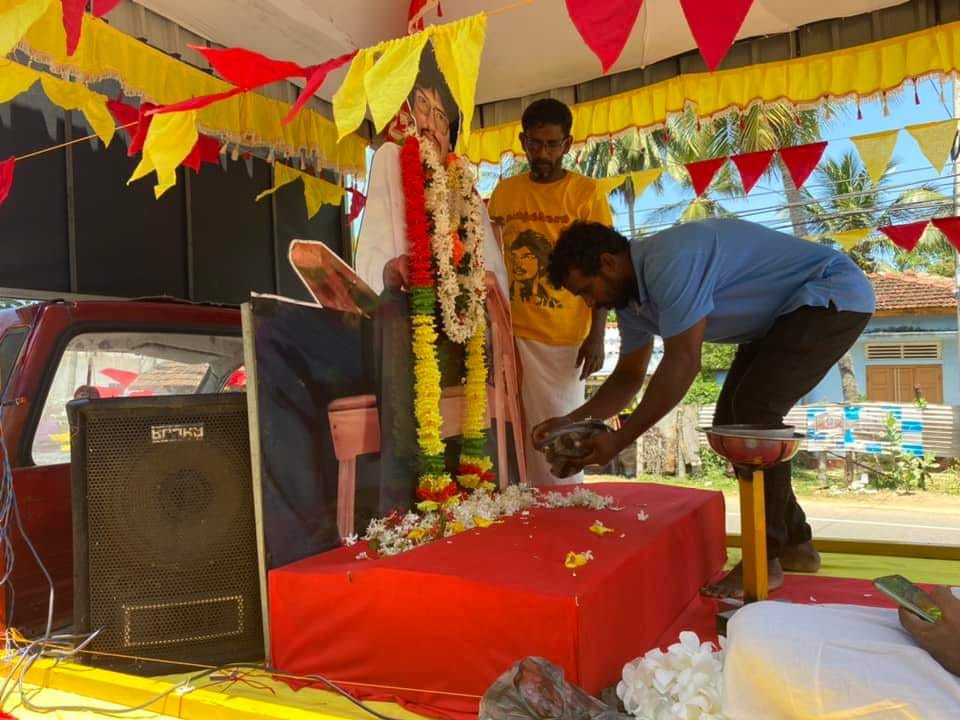 இதன்போது தியாக தீபம் திலீபனின் உருவப்படத்திற்கு மலர்மாலை அணிவிக்கப்பட்டு தீபம் ஏற்றப்பட்டு பொது மக்களால் மலர் தூவி திலீபனின் உருவப்படத்திற்கு மலர்வணக்கம் செலுத்தப்பட்டது.