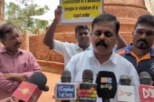 நீதிமன்ற கட்டளையை மீறி பௌத்த பிக்குவும் தொல்பொருள் திணைக்களமும் அடாத்தாக கட்டுமானம் செய்ய முடியுமா? அப்படி என்றால் நீதிமன்றத்தின் கட்டளை என்பது இந்த நாட்டில் வலுவற்றதா? என பாராளுமன்ற உறுப்பினர் சிவஞானம் சிறீதரன் கேள்வி எழுப்பியுள்ளார்.
