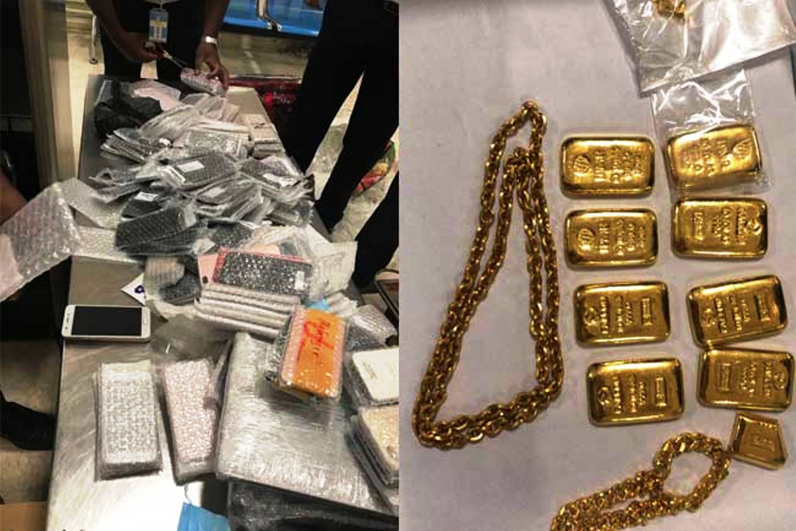சுமார் 225 இலட்சம் ரூபா பெறுமதியான கையடக்கத் தொலைபேசிகள், மடிக்கணினிகள், தங்க பிஸ்கட்கள் மற்றும் தங்கத் கட்டிகள் போன்றவற்றை சந்தேகநபர் நாட்டுக்கு கொண்டு வந்துள்ளார்.