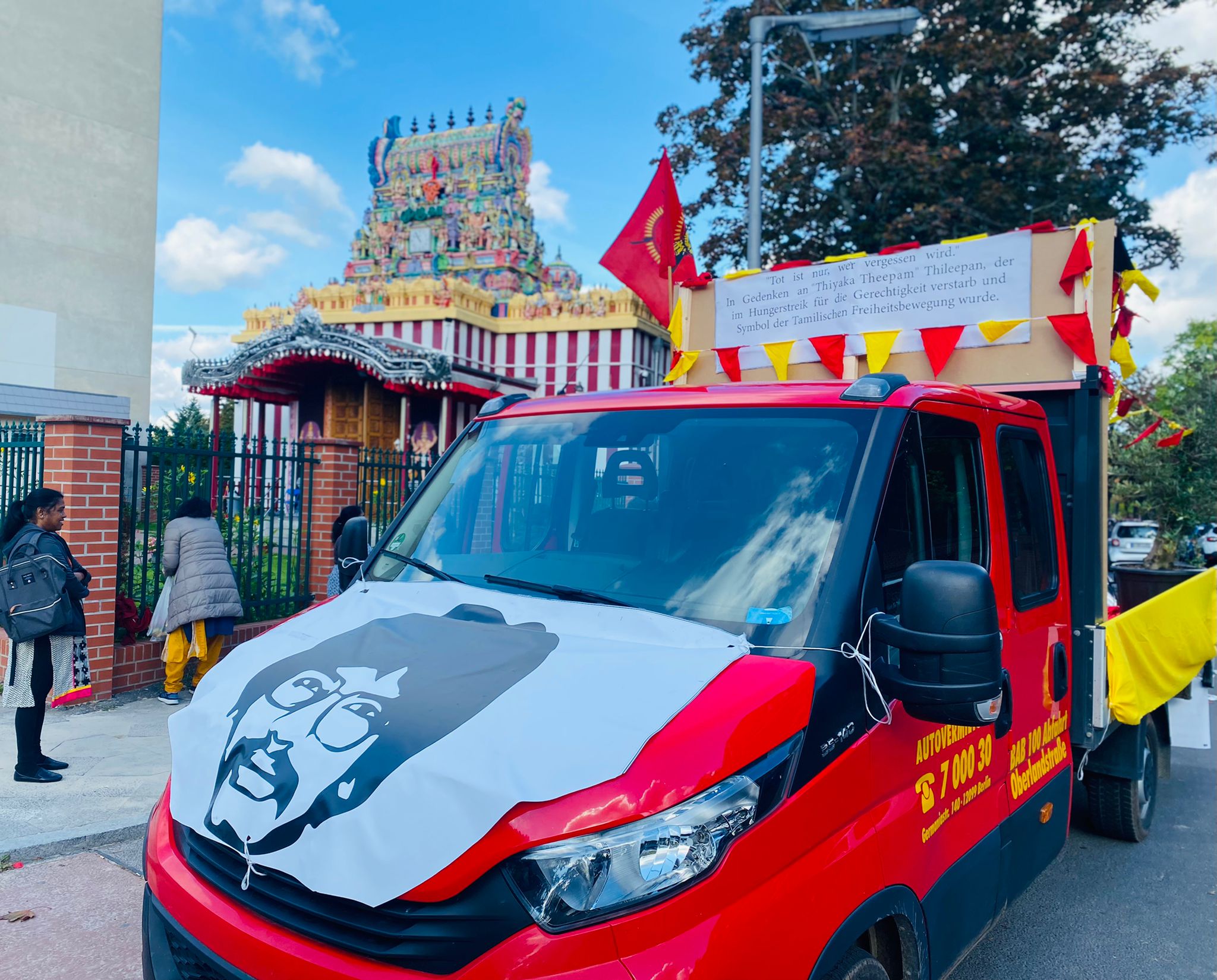 புலம்பெயர் தேசங்களில் முக்கிய செய்திகள் தியாக தீபம் லெப். கேணல் திலீபன் அவர்களின் 35ம் ஆண்டு நினைவையொட்டி யேர்மன் தலைநகர் பேர்லினில் அகிம்சையின் நீதிப்பயணம். Posted on September 26, 2022 at September 26, 2022 by சமர்வீரன் 581 0 தியாக தீபம் லெப். கேணல் திலீபன் அவர்களின் 35ம் ஆண்டு நினைவையொட்டி யேர்மன் தலைநகர் பேர்லினில் “அகிம்சையின் நீதிப்பயணம் “ வாகனப்பவனி கவனயீர்ப்பு போராட்டம் ஶ்ரீ மயூரபதி முருகன் ஆலய முன்றலில் சற்றுமுன் உணர்வுபூர்வமாக ஆரம்பிக்கப்பட்டுள்ளது.