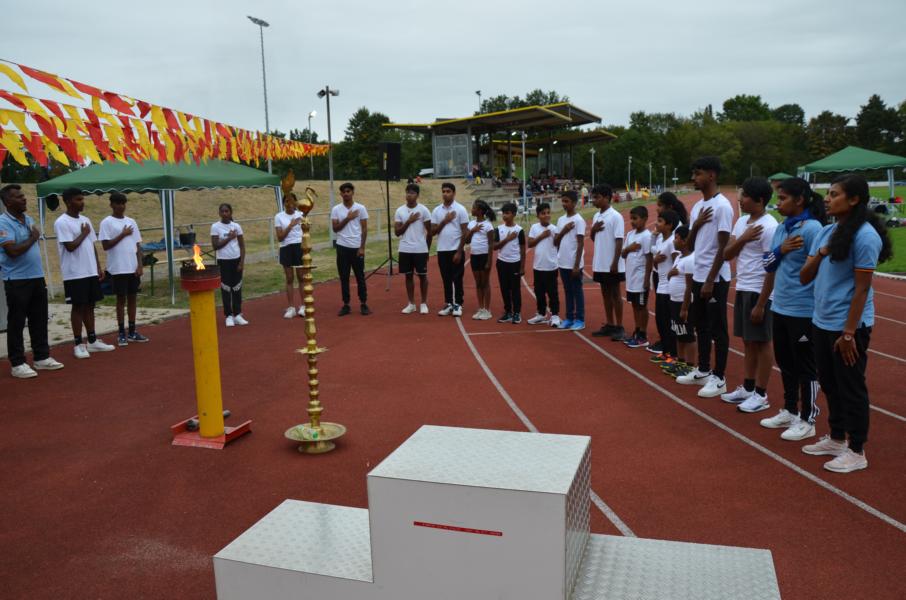 ஆரம்ப நிகழ்வாக பொதுச்சுடர் ஏற்றப்பட்டு யேர்மனியத் தேசியக் கொடியுடன் தமிழீழத் தேசியக் கொடியும் ஏற்றிவைக்கப்பட்டு பின்பு தமிழ்க் கல்விக் கழகத்தின் கொடியும் ஏற்றிவைக்கப்பட்டது. அதனைத் தொடர்ந்து மாவீரர்களுக்கும் மக்களுக்குமான அகவணக்கம் செய்யப்பட்டது.