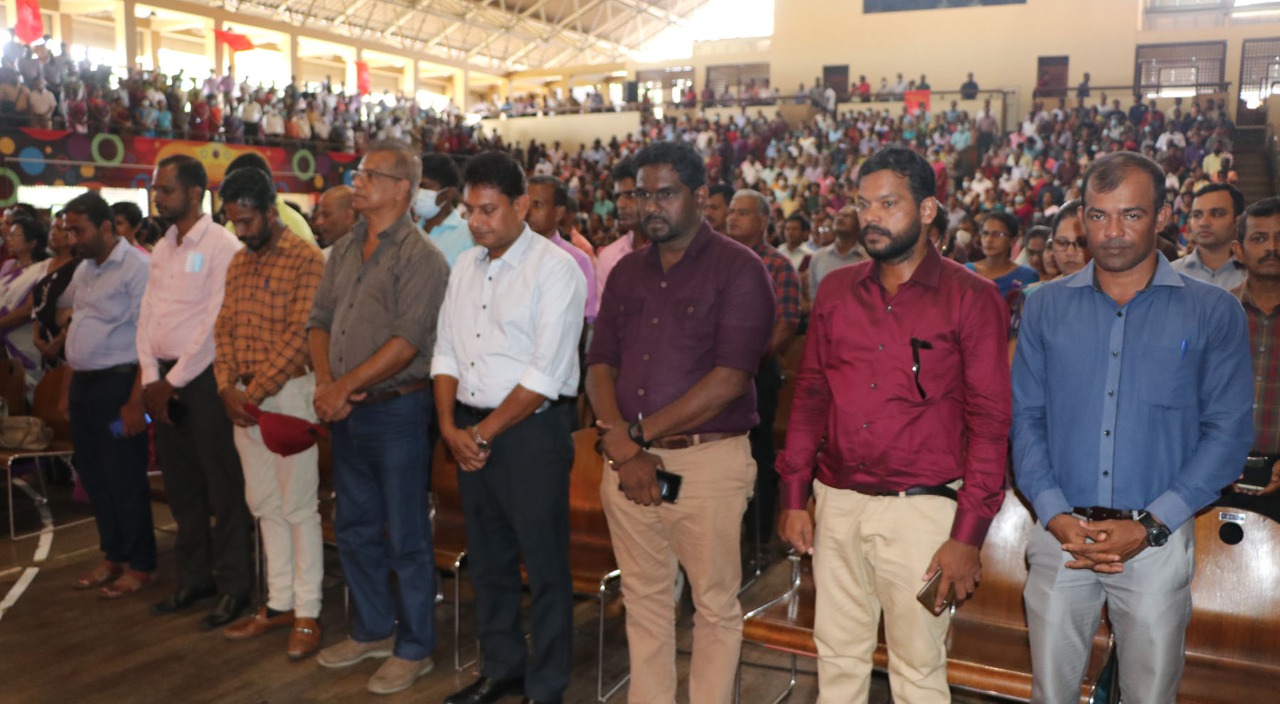 தேசிய வளங்களை விற்பனை செய்வதற்கு எதிராகவும் கறைபடிந்த மற்றும் மக்களுக்கு விரோதமான ஆட்சிக்கும் எதிராக எதிர்ப்பினைத் தெரிவிப்பதோடு போராட்டம் செய்யும் அரச ஊழியர்களை அடக்கும் ஜனநாயக விரோதச் சட்டங்களைக் கொண்டு வருகின்ற மக்கள் ஆணையற்ற நிகழ்கால கறைபடிந்த அரசாங்கத்துக்கு எதிராகவும் அணிவகுக்க வேண்டும் என்பதையும் அரச சொத்துக்களை விற்பனை செய்தல் மற்றும் அடக்குமுறைக்கு எதிராக போராட்டத்தினை முன்னெடுக்க வேண்டும் என்பதனையும் இந்த மாநாடு முன்மொழிந்து நிற்கிறது.