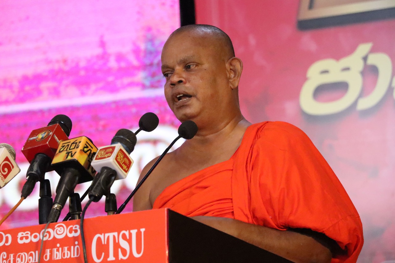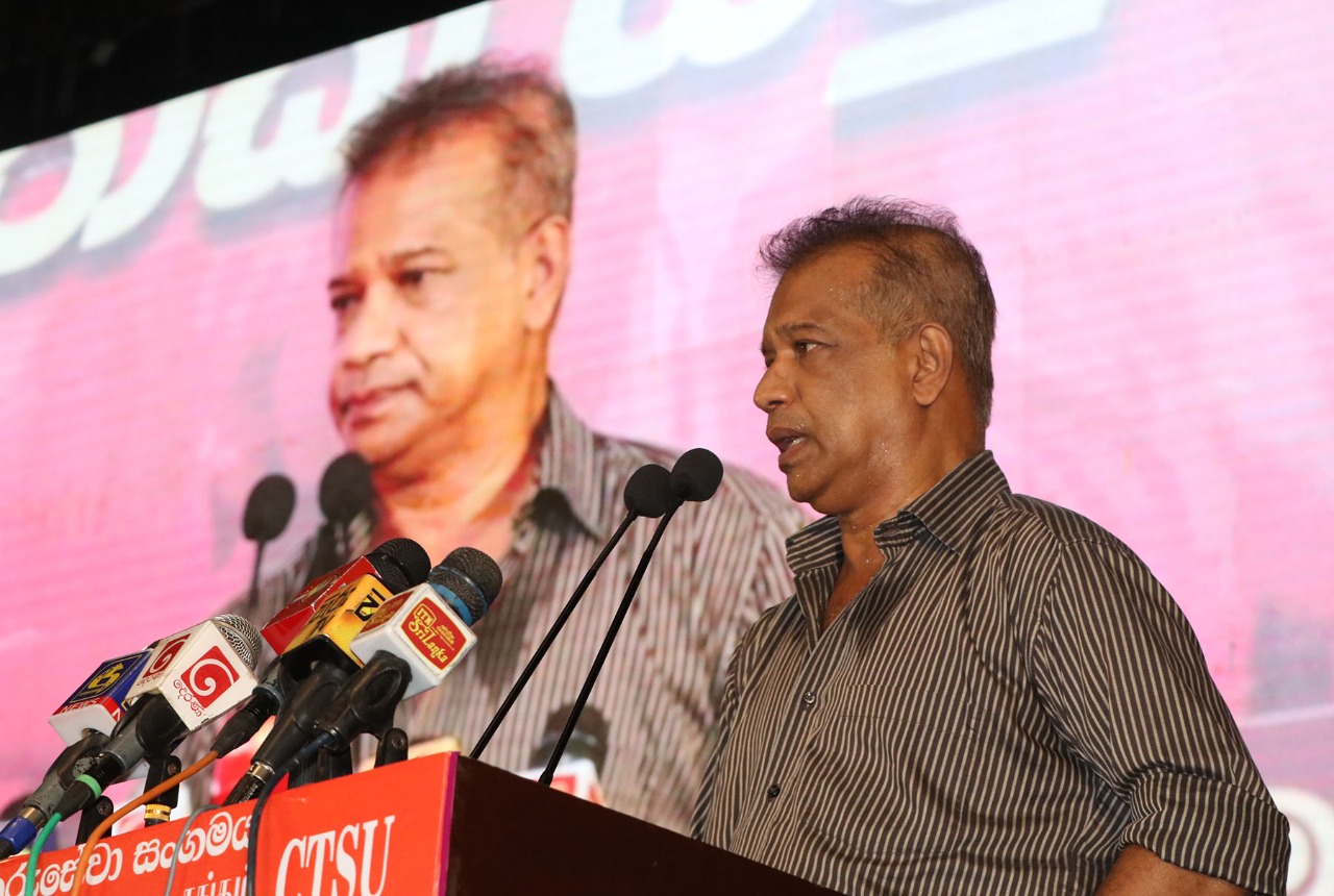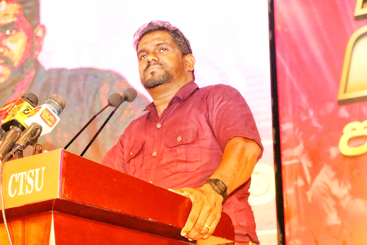 தேசிய தொழிற்சங்க மத்திய நிலையத்தின் தலைவர் லால் காந்த அவர்கள் பேசுகையில் ஜனாதிபதி ரணில் அவர்களால் நாட்டை கட்டி எழுப்ப முடியாது ஊழல் மோசடியில் ஈடுபட்ட குற்றவாளிகளே இன்று ஆட்சி அதிகாரத்தில் இருக்கின்றார்கள் மக்கள் முழுமையாக இவர்கள் மீது நம்பிக்கை இழந்து காணப்படுகின்றனர் உடனடியாக மக்கள் ஆணைக்கு மதிப்பளித்து தேர்தல் ஒன்றை நடத்த வேண்டும் அதன் மூலம் புதிய ஆட்சி அமைத்து நாட்டை கட்டி எழுப்ப முடியும் எனவும் அதற்கு தேசிய மக்கள் சக்தி தயாராக இருப்பதாகவும் குறிப்பிட்டார்.