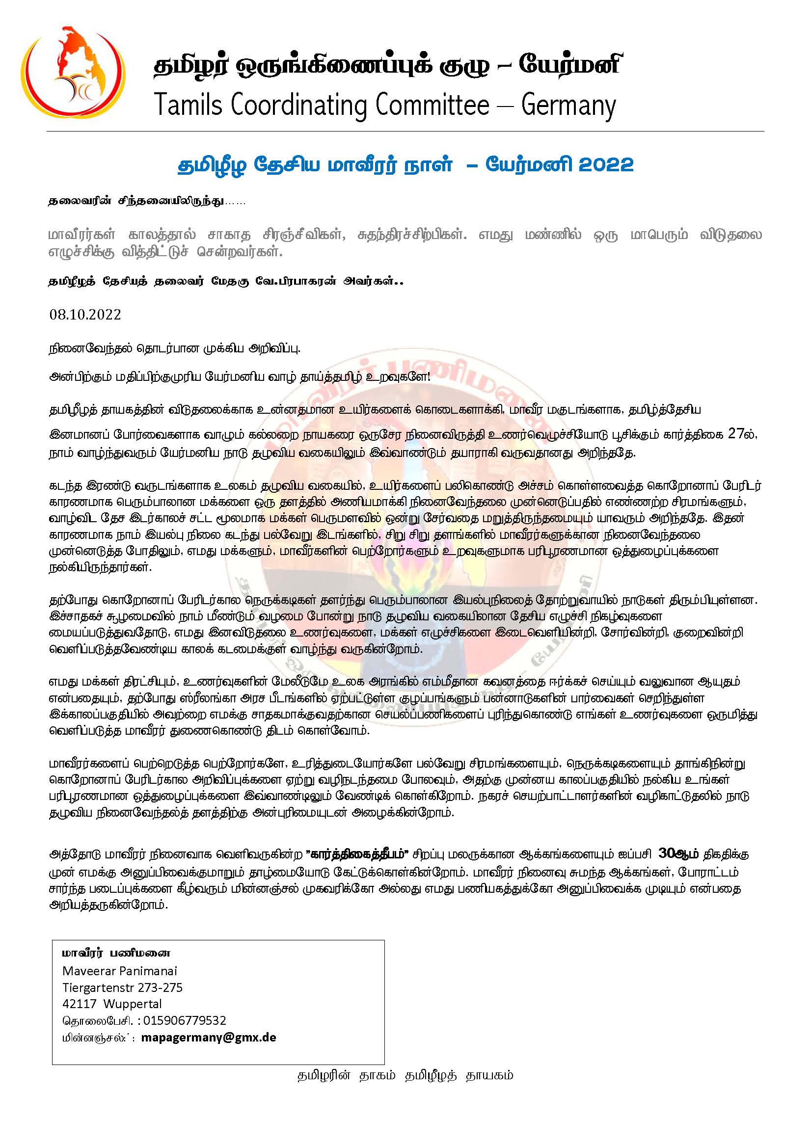 அன்பிற்கும் மதிப்பிற்குமுரிய யேர்மனிய வாழ் தாய்த்தமிழ் உறவுகளே!