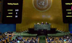 இந்நிலையில் ஐ.நா.பொதுச் சபையில் நேற்று ரஷ்யாவிற்கு கண்டனம் தெரிவித்து தீர்மானம் கொண்டு வரப்பட்டது. இதன் மீது வாக்கெடுப்பு நடத்தப்பட்டது. தீர்மானத்திற்கு ஆதரவாக 143 நாடுகளும் எதிராக 5 நாடுகளும் வாக்களித்தன. இந்தியா உள்ளிட்ட 35 நாடுகள் வாக்கெடுப்பை புறக்கணித்தன.