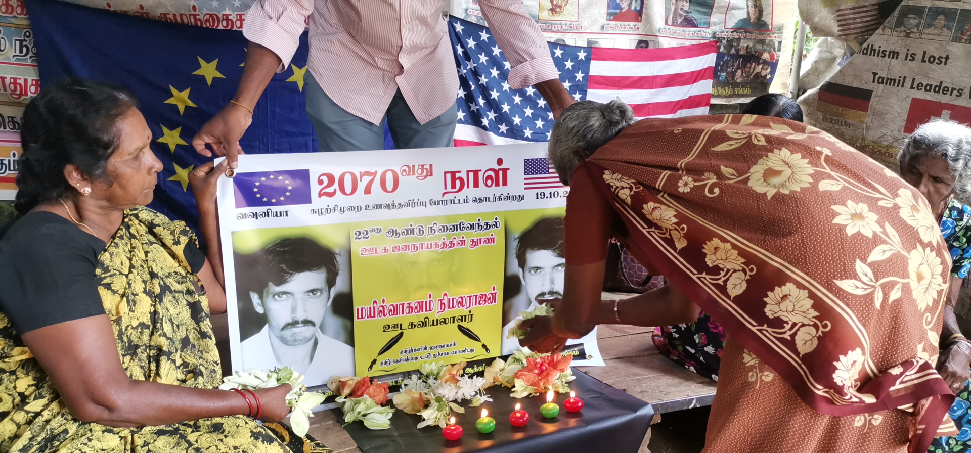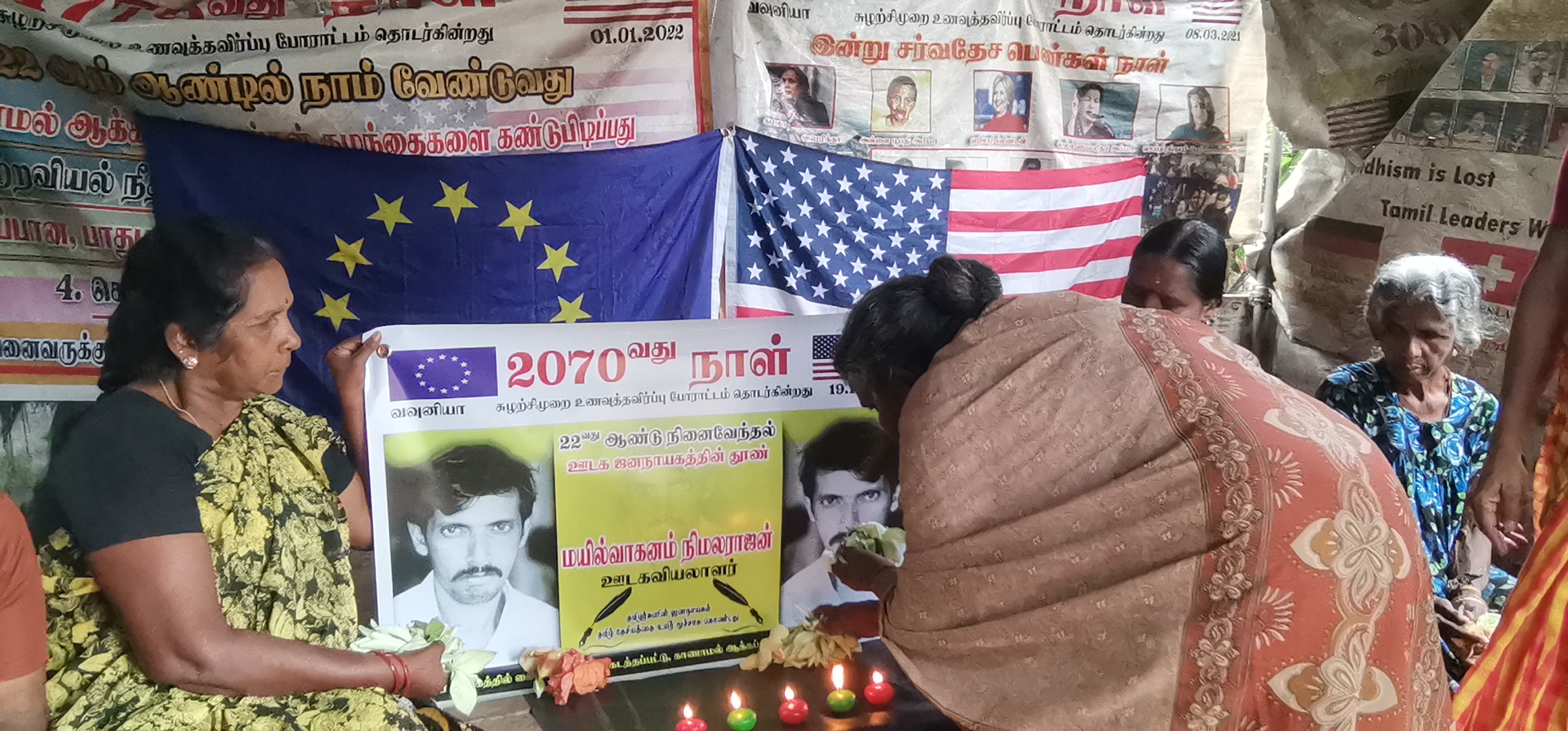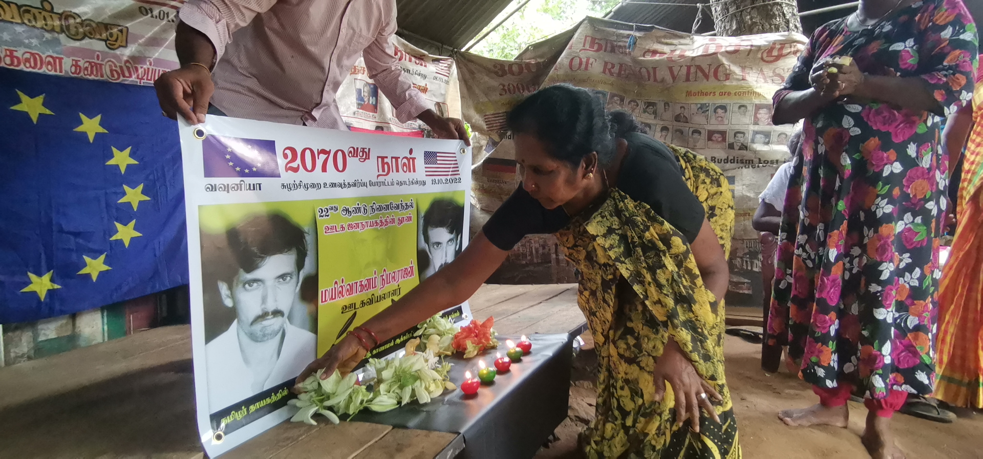 வடக்கு கிழக்கில் வலிந்து காணாமல் ஆக்கப்பட்டவர்களின் உறவுகளினால் தொடர் போராட்டம் மேற்கொள்ளப்படும் வவுனியா பிரதான தபாலகத்திற்கு அருகாமையில் குறித்த நிகழ்வு ஏற்பாடு செய்யப்பட்டது.