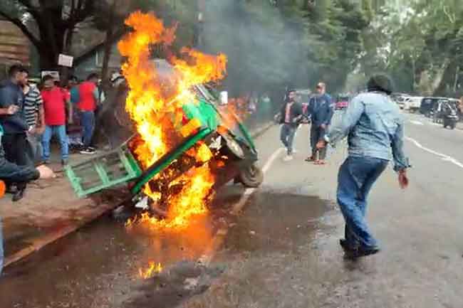 முச்சக்கரவண்டி தீப்பற்றி எரிந்த போது அருகில் இருந்தவர்கள் பல வழிகளில் தீயை கட்டுப்படுத்த முயற்சி செய்து, தீயை கட்டுப்பாட்டுக்குள் கொண்டு வந்தனர்.