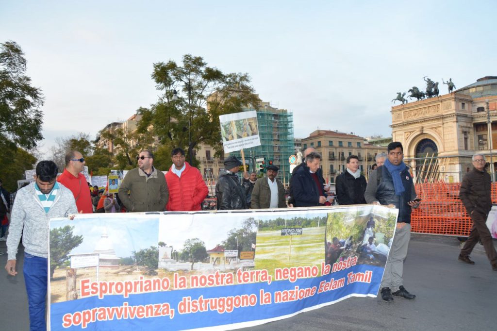 இத்தாலி பலெர்மோ நகரத்தில் கேப்பாபிலவு மக்களின் மண்மீட்ப்பு போராட்டத்துக்கு வலுச்சேர்க்கும் முகமாக எமது நிலம் எமக்கு வேண்டும் பேரணி நேற்றைய தினம் நடைபெற்றது. நிகழ்வின்போது “எங்கள் நிலங்கள் எமக்கு வேண்டும்” “இராணுவமே வெளியேறு” “எமக்கு தேவை சுதந்திரம்” “எங்கள் நாடு தமிழீழம்” என பல கோசங்கள் ஒலிக்கப்பட்டன.தாயக உறவுகளின் போராட்டங்களோடு அவர்களுக்கு ஆதரவுக்குரலாக எப்போதும் நாங்கள் இருப்போம் எனவும் அனைவரும் உறுதியெடுத்துக்கொண்டதோடு நிகழ்வு நிறைவடைந்தது.