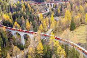 ஆல்ப்ஸ் மலையோரம் அமைந்துள்ள பிரெடா முதல் பெர்குவென் வரை உள்ள அல்புலா/பெர்னினா பாதையில் ரெசின் ரயில்வே நிறுவனம் 1.9-கிலோமீட்டர் நீளமுள்ள (1.2-மைல் நீளம்) ரயிலை 100 பெட்டிகள் இணைக்கப்பட்டு இயக்கியுள்ளது.