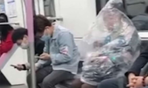 சீனாவின் ரயிலில் பயணித்த ஒரு பெண், தனது முகத்தை பிளாஸ்டிக் பையால் மூடிக்கொண்டு, வாழைப்பழத்தை சாப்பிடும் காட்சிகள் சமூக வலைதளங்களில் வைரலாகி வருகிறது. சீனாவில் கொரோனா வைரஸ் தொற்றை கட்டுப்படுத்த, ரயிலில் பயணிக்கும் போதும், பொது இடங்களிலும் மக்கள் எதையும் சாப்பிட கூடாது என உத்தரவிடப்பட்டு இருக்கிறது. இந்நிலையில், ரயிலில் பயணித்த ஒரு பெண், வாழைப்பழத்தை சாப்பிடுவதால், தொற்று பரவாமல் இருக்கும் உத்தரவை மீறாமல் இருக்கவும், தனது முகத்தை பிளாஸ்டிக் பையால் மூடிக்கொண்டுள்ளார். சக பயணிகள் இதை வினோதமாக பார்த்தனர். இவர் முகத்தை மூடிக்கொண்டு பழத்தை சாப்பிடும் வீடியோ சமூக வலைத்தளங்களில் வைரலாகி வருகிறது. அந்தப் பெண் சீனாவின் ஹுபேய் மாகாணத்தில் பயணம் செய்ததாக தெரியவந்துள்ளது. சுரங்கப்பாதை ரயிலில் அவர் பயணித்தபோது வாழைப்பழம் சாப்பிடும்போது சக பயணி ஒருவர் தனது செல்போனில் பதிவு செய்து வெளியிட்டதாக உள்ளூர் ஊடகங்கள் தெரிவிக்கின்றன.