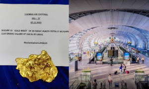 அந்த தங்கத்தை அதிகாரிகள் பறிமுதல் செய்தனர். 1.15 கிலோ எடை கொண்ட 24 கேரட் தங்கம் 51 லட்சத்து 42 ஆயிரம் ரூபாய் மதிப்பு கொண்டது என தெரிவிக்கப்பட்டுள்ளது. தங்கத்தை கடத்தி வந்த அந்த பயணி கைது செய்யப்பட்டார். இதுகுறித்த புலன் விசாரணை தொடர்ந்து நடைபெற்று வருகிறது. இவ்வாறு அதில் தெரிவிக்கப்பட்டுள்ளது.