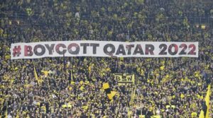 ஜேர்மனி மைன்ஸில் நடைபெற்ற புண்டஸ்லீகா போட்டியில் தங்களது எதிர்ப்பை வெளிப்படுத்தும் வகையில் கட்டாரைப் புறக்கணிக்குமாறு வலியுறுத்தி விளையாட்டு அரங்கில் மிகப்பொிய பதாதையை உதைபந்தாட்ட ரசிகர்கள் தாங்கியிருந்தார்கள்.
