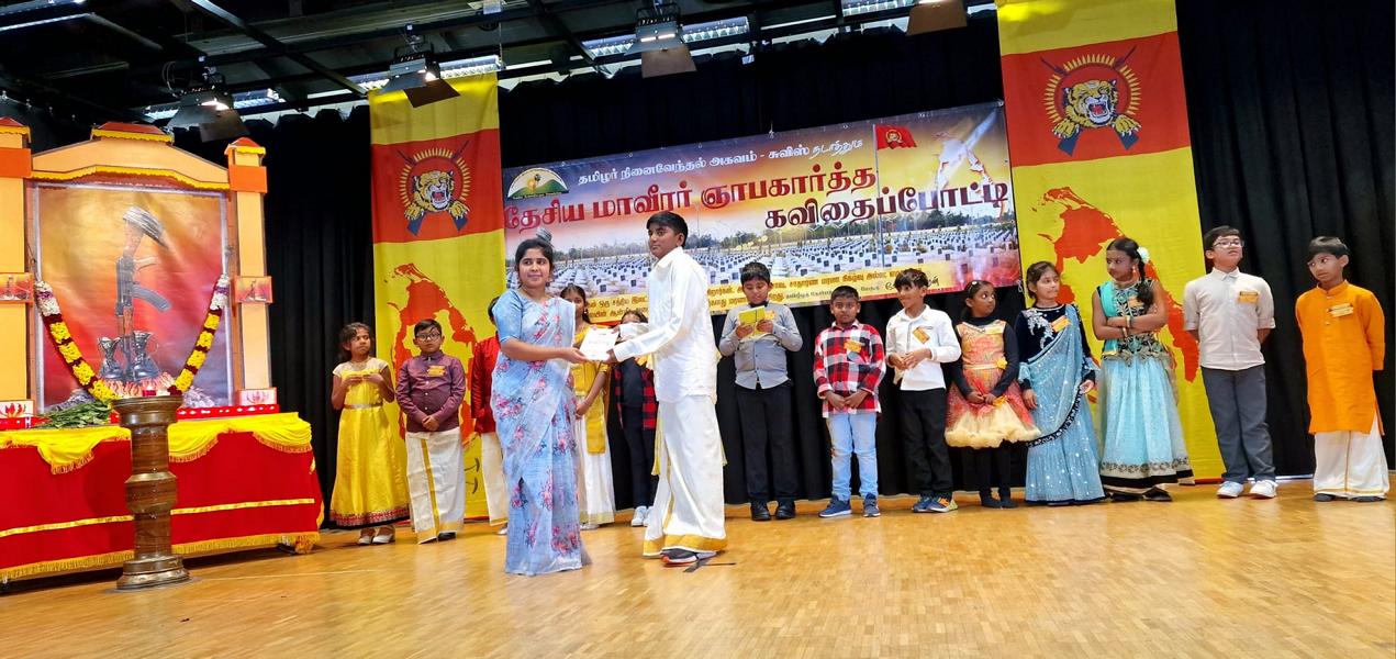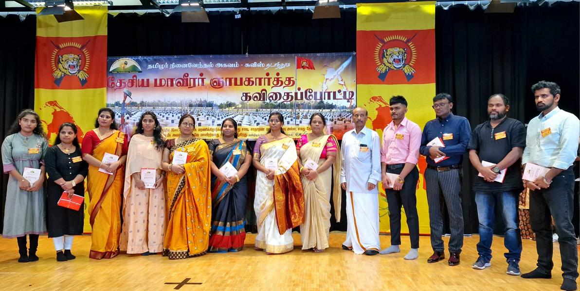 சுவிஸ் நாட்டில் தமிழரெல்லாம் எழுச்சிகொள்ளத்தொடங்கியதன் சான்றாக கடந்த 06.11.2022 ஆம் நாள் ஞாயிற்றுக்கிழமை தமிழீழத் தேசிய மாவீரர் நினைவுக் கவிதைப்போட்டி பேர்ண் மாநிலத்தில் உணர்வெழுச்சியுடன் நடைபெற்றது. இக்கவிதைப்போட்டியானது 45 போட்டியாளர்கள்இ தகைநிறை நடுவர்கள்இ அரங்கம் நிறைந்த உணர்வாளர்களுடன் மிகச் சிறப்பாக நடைபெற்றது. காலை 10:00 மணிக்குத் தொடங்கிய இப்போட்டி நிகழ்வில் காலை 11:30 மணிவரை கவிதை எழுதுதலும் 13:00 மணிமுதல் கவிதை பாடும் போட்டியும் இடம்பெற்றது. கீழ்ப்பிரிவுஇ மத்தியபிரிவுஇ மேற்பிரிவுஇ அதிமேற்பிரிவு என நான்கு பிரிவுகளிலும் பங்குபற்றிய அனைத்துப் போட்டியாளர்களையும் அவர்களை ஊக்குவித்து வழிகாட்டிய அனைவரையும் இவ்வேளையில் பாராட்டுகின்றோம். எழுச்சிக்கவி 2022 விருதினைத் தனதாக்கிக்கொண்ட அதிமேற்பிரிவைச் சேர்ந்த சிவானந்தன் கஜேந்திரப்பிரசாத் அவர்களையும் அனைத்துப் பிரிவுகளிலும் வெற்றி பெற்ற வெற்றியாளர்களையும்வாழ்த்துகிறோம்.