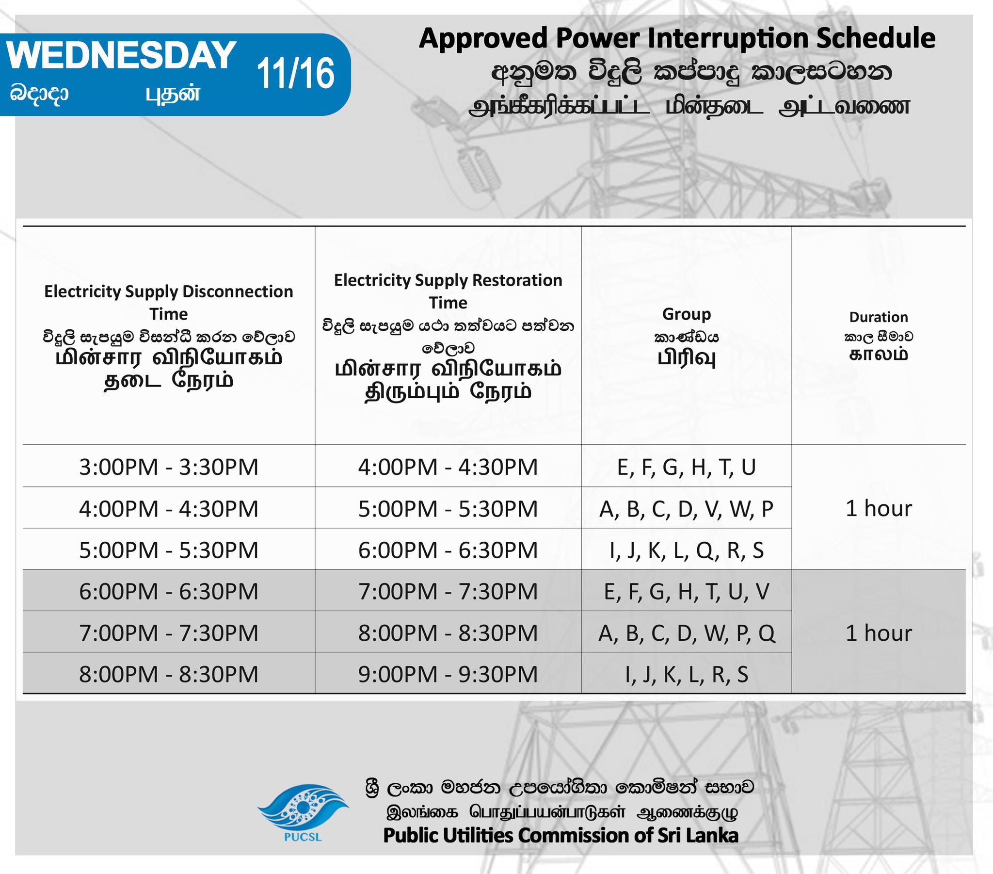 நாடளாவிய ரீதியில் இன்று (16) புதன்கிழமை 02 மணித்தியாலங்கள் மின்வெட்டை அமுல்படுத்துவதற்கு பொது பயன்பாடுகள் ஆணைக்குழு அனுமதி வழங்கியுள்ளது.