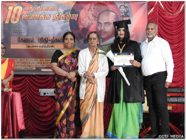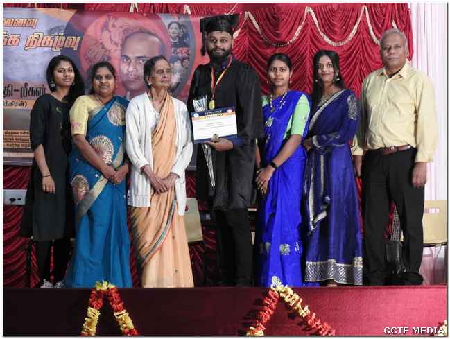 உணர்வுபூர்வமாக இடம்பெற்ற இந்நிகழ்வில் பிரான்சு மண்ணில் உயர்கல்வியை முடித்து பல்வேறு துறைகளிலும் பட்டம்பெற்ற 15 தமிழ் மாணவ மாணவியர் மதிப்பளிப்புச் செய்யப்பட்டிருந்தனர். இவர்களுக்கான மதிப்பளித்தலை கேணல் பருதி அவர்களின் தாயார் வழங்கியிருந்தார்.